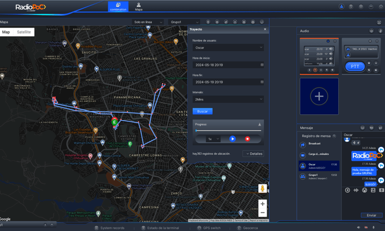 Split de 16 cámaras en pantalla (solo despacho) en Radio/App solo 1 cámara.
