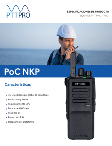 Si buscas un radio robusto, potente y confiable, el NKP es la elección perfecta. Con su diseño resistente IP54, batería de larga duración (4800mAh) y altavoz de 3W que alcanza los 120dB, este equipo garantiza una comunicación clara incluso en los entornos más exigentes. Su tecnología PoC (Push-to-Talk Over Cellular) permite conexión global sin restricciones, mientras que su botón SOS y GPS brindan seguridad adicional.