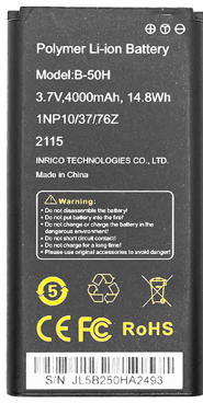 La batería de polímero de litio removible de 4000mAh permite un uso más seguro y confiable. Además, ofrece un rendimiento de más de 48 horas en operación 10/10/80 (10% de transmisión, 10% de recepción, 80% en espera).