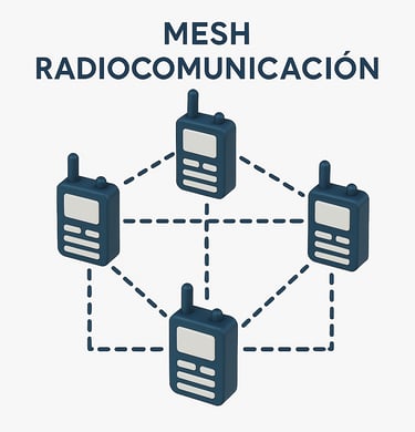 A diferencia de los sistemas tradicionales, los radios digitales MESH permiten que cada dispositivo funcione como un nodo independiente que se conecta automáticamente con otros radios en la red. Esto crea una malla de comunicación robusta y flexible, donde cada radio extiende el alcance general sin necesidad de repetidores.